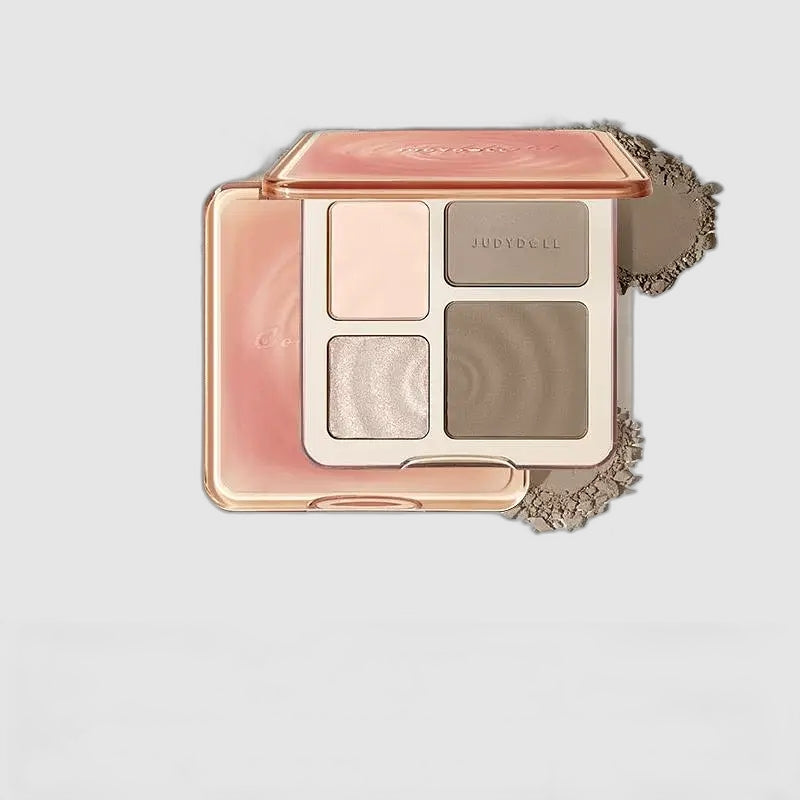 Similar 4-shade powder format with contour and highlight shades. Slightly chalkier texture and less refined shimmer compared to Judydoll's mashed-potato formula. Cruelty-free and widely available at drugstores.